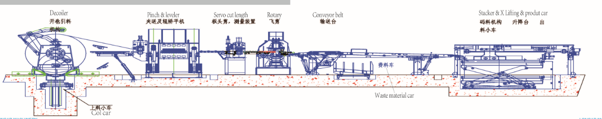 प्रेसिजन कट-टु-लम्बाइ रेखामा मुख्यतया फिडिङ कार्ट, अनकोइलर, लेभलिङ मेसिन, फिडिङ मेकानिज्म, कपाल काट्ने मेसिन, कन्भेइङ उपकरण, र स्ट्याकिङ उपकरणहरू समावेश हुन्छन्। कट-देखि-लम्बाइ मेसिनलाई पाना सामग्रीलाई आवश्यक चौडाइमा काट्न, लम्बाइ-विशिष्ट कतर्न, र सामग्री स्ट्याक गर्न स्लिटिंग मेसिनले सुसज्जित गर्न सकिन्छ। हाई प्रेसिजन कट-टू-लेन्थ मेसिन मेसिनरी, बिजुली र हाइड्रोलिकलाई एकीकृत गर्ने उच्च प्रदर्शन उत्पादन हो। यसले उच्च स्वचालन, सरल र भरपर्दो सञ्चालन, उच्च लम्बाइ शुद्धता, उत्कृष्ट पाना समतलता, र सफा स्ट्याकिंग सुविधा दिन्छ।